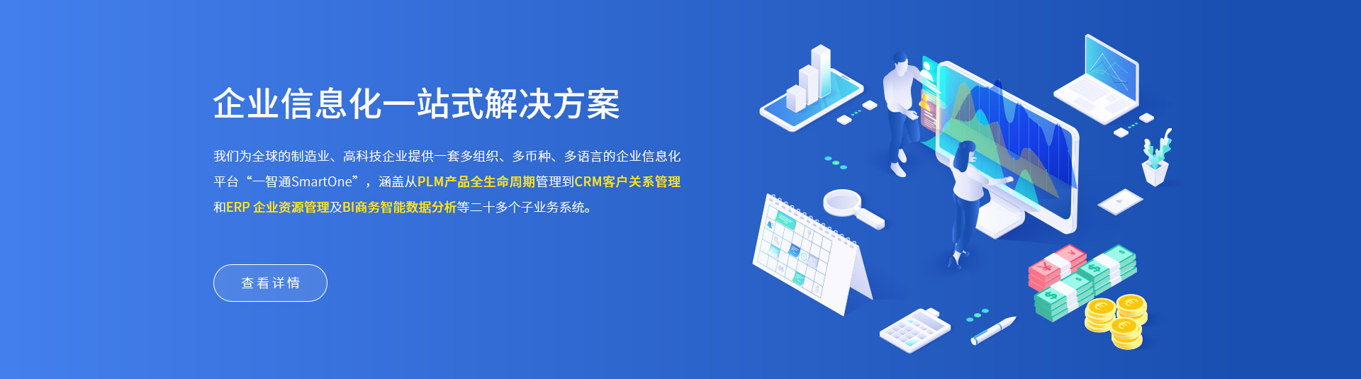 一智通(SmartOne)企業(yè)信息化一體化信息管理方案,涵蓋從 PLM 產(chǎn)品全生命周期管理 到CRM客戶關(guān)系管理和ERP企業(yè)資源管理及BI商務智能數(shù)據(jù)分析等二十多個子業(yè)務系統(tǒng)。